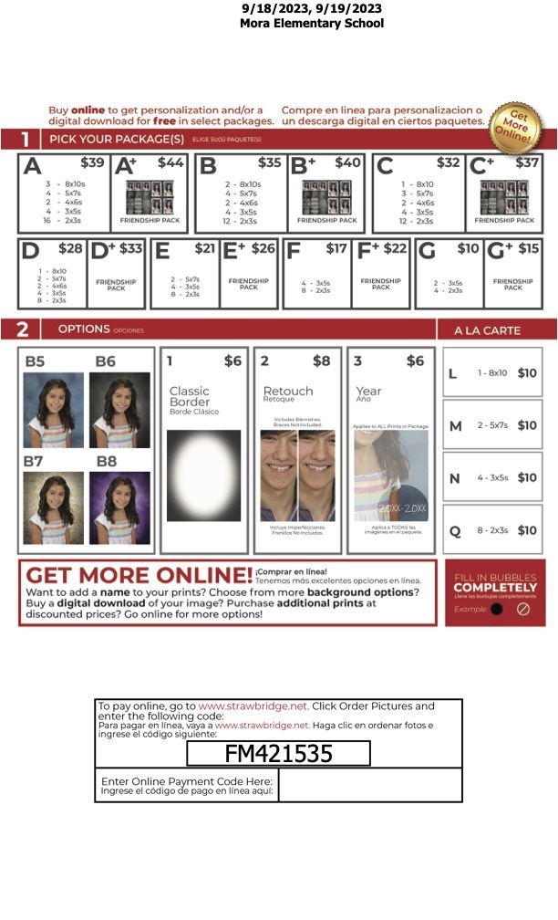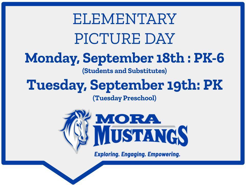 Please see the attached. Picture Day is Monday, September 18 and Tuesday, September 19. Watch for Picture Day flyers in your student's backpack next week.
